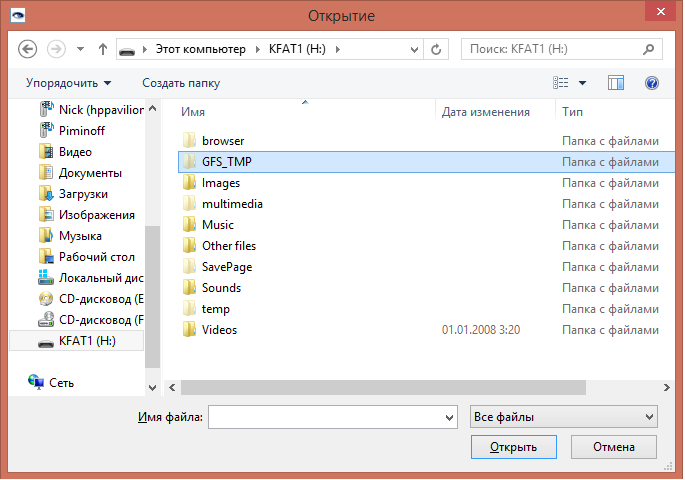 7. Находим в корне телефона (не карты памяти!!!) скрытую папку "GFS_TMP". В ней лежит файл mainScr.hex (если будем щёлкать не один раз, то там будет лежать куча подобных файлов с номерами в названии mainScr1, mainScr2 и т.д.).