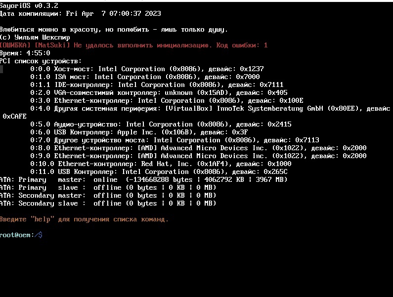 Обновление ядра приготовили для вас: Команда разработки SayoriOS Team [ Никита Пиминов и Drew Pavlenko ]
